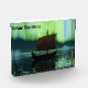 A slightly stylised image of a Viking longship sailing at night under the Northern Lights there a couple of icebergs; most of the crew is asleep. Add your own text.