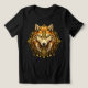 Unleash the mystical power of the North with this striking Viking wolf design inspired by Norse mythology. This detailed artwork features a majestic wolf with glowing green eyes surrounded by intricate Nordic geometry and ancient rune-inspired patterns. The symmetrical emblem and golden ornamental elements create a powerful Nordic aesthetic rooted in mythology and warrior symbolism.