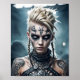 Viking worrior woman with rune tattoo and war sign