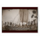 Vintage 19th century illustration of a viking longboat. Hand drawn image of vikings rowing a masted boat. Artwork by Anker Lund.