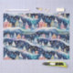 A soft and colourful print to enchant the children- a pastel coloured quaint village in a midnight blue snowstorm. Seamless image.