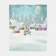 Village winter landscape with snow covered houses and christmas tree with decorations