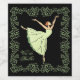 With fiery grace she transforms her spirit into joyful dance. A beautiful watercolour illustration in shades of green of a ginger haired ballet dancer surrounded by green vines.