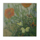 Butterflies and Poppies (1890) by Vincent van Gogh is a vintage fine art still life post impressionism nature painting. A garden scene. Van Gogh was inspired by Japanese art which shows in this close-up of the flowers and insects which is typical in Japonism. White butterfly insects are flying around beautiful blooming red poppy flowers and bright green foliage in a spring garden.