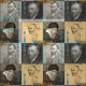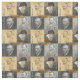 Vincent Van Gogh Fabric, four famous self portraits drawings remake in warm monochrome palette and stylish font text with famous "Starry Night" and "Sunflowers" paintings in blue yellow background colours
