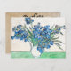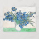 A beautiful vintage impressionist painting image of a vase of blue flowers postcard. This would be great for collectors or to send to friends and family.