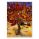 Beautiful artistic vintage landscape painting of a mulberry tree in bright autumn colours.