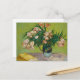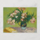 This painting by Vincent Van Gogh, created in August 1888, depicts a vase filled with vibrant oleander flowers. Known for their lively and happy appearance, oleanders were a favourite of Van Gogh, and he captured their essence in this work. The flowers are arranged in a majolica jug, which was frequently used by Van Gogh for his still lifes in Arles. The piece is a testament to Van Gogh's post-impressionist style, with bold colours and dynamic brushstrokes that bring the flowers to life, reflecting the artist's emotional connection to nature and his surroundings.