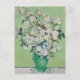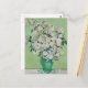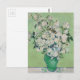 Beautiful Van Gogh Roses painting on a postcard featuring impressionism floral art with pretty roses in a green vase on a white table with traces of pink on a nice yellow green background. Cool vintage floral bouquet gift for an 1800s artist admirer who loves the impressionist period.
