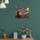 Starry Night (1889) by Vincent van Gogh is a vintage post impressionism fine art landscape nature painting. A view of a city in a valley at night with the clouds swirling, the stars shining and a beautiful golden yellow crescent moon. It was painted during the day from memory and is van Gogh's most famous painting.