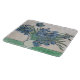Vincent Van Gogh's iconic painting of irises in a vase is on the cutting board.
