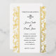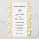 This wedding invitation is shown in a classic layout on a lovely gold foil vine background.