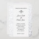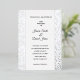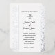 This wedding invitation is shown in a classic layout on a lovely silver foil vine background.