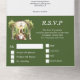 A beautiful all-in-one woodland watercolor invitation featuring faux sparkling string lights in front of beautiful manicured poplar trees and topiary bushes. A wooden table dressed with a crisp white table cloth has wooden chairs on either side of it and a wooden arch above it filled with vine leaves and grapes. The table is set on top of large paving blocks and the scenic setting has an upmarket and sophisticated look to it. The generative content graphics are set against white and forest green backgrounds that have black and white editable templates on them. The bottom third has a tear off response card with personalised rsvp address for your guests to complete. These are ideal for Italian winery, Tuscan vineyard; Nappa Valley wine farm and al fresco country woodland weddings or dinner parties.