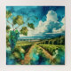 Alcohol Ink Design of Vineyard with Big Clouds