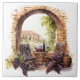Ceramic tile is shown with a lovely watercolor print of a vineyard.