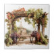Ceramic tile is shown with a lovely watercolor print of a vineyard.