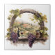 Ceramic tile is shown with a lovely watercolor print of a vineyard.
