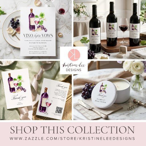 Complete your celebration with this elegant “Vino Before Vows” recipe card, featuring delicate watercolor wine elements that perfectly match your bridal shower theme. Designed for guests to share their favorite recipes, it’s a meaningful keepsake the bride will treasure long after the party. Ideal for winery, vineyard, or wine-inspired bridal showers.