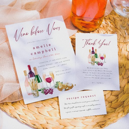 A modern thank-you card to match our Vino Before Vows Wine Bridal Shower collection. This design features a watercolor scene of red wine, French champagne, and rose with Italian breadsticks, grapes, a cheeseboard, and a custom heartfelt thank-you message to express your gratitude to friends and family. Perfect for wine tasting and winery bridal showers. The back of the design features an elegant pattern of charcuterie boards, wine bottles, and bubbly flutes. View the collection linked on this page for the matching bridal shower set. Feel free to message me with any questions, I'll be happy to help!