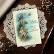 • Passed down from a family collection started by my great-grandfather in England, this digital illustration captures the timeless beauty of a turn-of-the-century postcard. This artwork features two brown birds soaring over a cluster of delicate pink and white cherry blossoms and a heartfelt birthday poem.