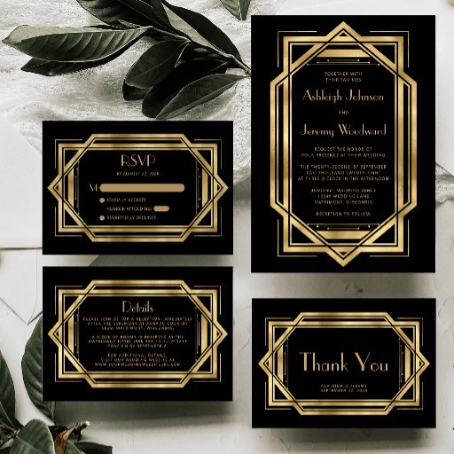 Vintage Deco Black Gold Hexagon Wedding SuiteDesigned by Akhates Designs
