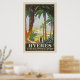 Retro advertising tourism poster featuring palm trees and skyline from the South of France from our Hyeres Collection