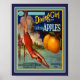 Vibrantly coloured, vintage, 1930's, fruit crate, advertisement poster for "Diving Girl" brand California Apples