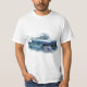 Digital art t-shirt design features white and blue 1950s vintage Chevrolet 4-door sedan