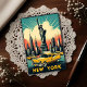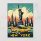 • This vibrant, retro-style postcard celebrates the iconic New York City, featuring the Statue of Liberty, the towering Empire State Building, and classic yellow taxis cruising along the waterfront. The artwork uses bold, warm colors to highlight the city's dynamic skyline, with rays of light streaming through the sky, adding an energetic and nostalgic vibe. Perfect for lovers of vintage aesthetics, New York history, and retro decor, this poster captures the timeless allure of the Big Apple.