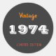 Celebrate a milestone in style with this vintage 1974 limited edition round sticker! Perfect for marking a 52nd birthday, this retro-inspired design makes a fun and unique party favour, envelope seal, or gift decoration.