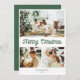 Vintage 3 Photos Christmas Greeting Holiday Car. Simple image change with your own. Personalise the card with your custom greeting, family name, and year for a personal touch. The back of the card showcases your heartfelt message in white text set against a deep green background with the snowflakes falling.