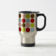 Enjoy your coffee or tea in this designer travel mug that features a charming pattern of big, vintage, 1950s polka dots in pink, blue, brown, red and green. Two styles to choose from.