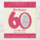Pink and cream ribbon and fleur-de-lis patterned girls 60th birthday wine, spirits or drinks labels. Reads Bethany 60 Vintage 1968 aged to perfection, customise with your own birthday girls name vintage birth year and a photos of your choice, in the 0 of 60. A great way to customise your gift of wine. Matching wine box also available. © Designed by Sarah Trett. www.sarahtrett.com for www.mylittleeden.com