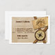 Vintage Adventure Wedding Response Card featuring a rope border, an antique compass, a dinosaur information plate and a distressed look digital art paper texture background. This cool wedding RSVP card is perfect for an archaeology adventure or museum themed wedding. Easy to customise, simply add your wedding details. Click "Customise It" to find more personalisation options.