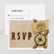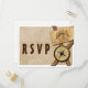 Vintage Adventure Wedding Response Postcard featuring a rope border, an antique compass, a dinosaur information plate and a distressed look digital art paper texture background. This cool wedding RSVP postcard is perfect for an archaeology adventure or museum themed wedding. Easy to customise, simply add your wedding details. Click "Customise It" to find more personalisation options.