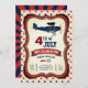 Celebrate Independence Day with this beautiful vintage Fourth of July invitation featuring a retro aeroplane with eye-catching typography. Simply add your event details on this easy-to-use template to make it a one-of-a-kind invitation. Flip the card over to reveal a red and blue starburst pattern on the back of the card.