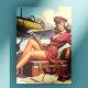 Vintage Aeroplane Pin-Up Illustration Postcard
