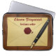 Vintage Envelope © Sunny Mars Designs. This beautiful elegant custom 13" laptop sleeve is fully customizable and features an illustration of an old vintage style envelope and a red wax seal with an ink fountain pen against a wooden background. Perfect for freelance writers, editors or proofreaders. Personalize it by adding your own name and title or other text to it.