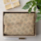 Tissue paper featuring a printed, stained, vintage paper texture with your custom logo repeated in a diagonal pattern. Easy to use template. To adjust the spacing between the logo repetitions, increase or decrease the tile size and the size of the logo or upload your logo with a transparent margin.