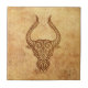 This stylised symbol for the zodiac sign Taurus is decorated with intricate lines and dot patterns. The pattern features the head of a bull with its horns curving up towards the top of the design. Rough textures and natural colours gives the design an an aged and worn look. This stunning design is a beautiful and stylish way to show of your Astrological sign.