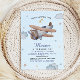 Inspired by dreamy skies and classic wooden toy planes, this sweet design captures the magic of a little one’s very first adventure. Soft blue tones, fluffy clouds, and twinkling stars create a warm, storybook feel—perfect for celebrating a one-year milestone in the cutest way.