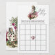 Trendy colorway blush, mint, burgundy and rose gold watercolor floral alice in wonderland baby shower bingo cards customisable to your event specifics.