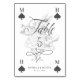 Beautifully designed vintage Alice in Wonderland-themed wedding table number signs. Perfect for an Alice in Wonderland-themed wedding. We've meticulously restored the iconic Alice in Wonderland vintage white rabbit character illustration by hand sketching it. The table number is designed like a playing card with the spade symbol and customisable monograms for the couple's name. Elegant and vintage text style pairings enhance this magical, whimsical, and iconic vintage Alice in Wonderland theme.