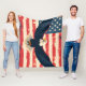 Show your patriotic spirit with this ultra-soft fleece blanket featuring a majestic eagle against a distressed vintage American flag background. Perfect for adding a bold, classic touch to your space while staying warm and cozy.