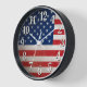 Show your patriotic American pride with this classic stylish vintage style American Flag design clock. Red white and blue stars and stripes, with easy to read white numbers. A classic addition to any patriotic home decor them in the USA or anywhere.
