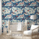 A beautifully crafted vintage-inspired pattern featuring iconic American landmarks and symbols. With the Statue of Liberty, USA map, mountain ranges, and Brooklyn bridge all set against a rustic blue background, this wallpaper celebrates the spirit of the United States through timeless and recognisable imagery. Perfect for adding a nostalgic and patriotic flair during national holidays or year-round.