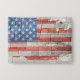 Vintage Patriotic United States map with USA Flag, red white and blue stars and stripes, on stone wall tiles.