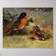 This is a beautiful illustration of an adult American Robin and a fledgling by Canadian bird artist and ornithologist Allan Brooks. The colourful birds are part of a larger work that also includes Varied Thrush. This vivid painting reproduction of an iconic North American bird is a great gift idea for anyone that loves birds! This reproduction poster print can be customised to your preferred paper style and a frame can be added for some instant bird-lover wall art!