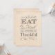 Elegant vintage style invitations to a thanksgiving dinner or any occasion to be grateful for. Text on the front reads "Eat, Drink and be Thankful." Text on the reverse is fully customisable. Beautiful antique finish evokes vintage American victorian style or the old West.